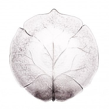 Большая глубокая тарелка, изготовленная из матового стекла с рельефной фактурой. Имеет элегантную форму листа. Диаметр - 23 см.